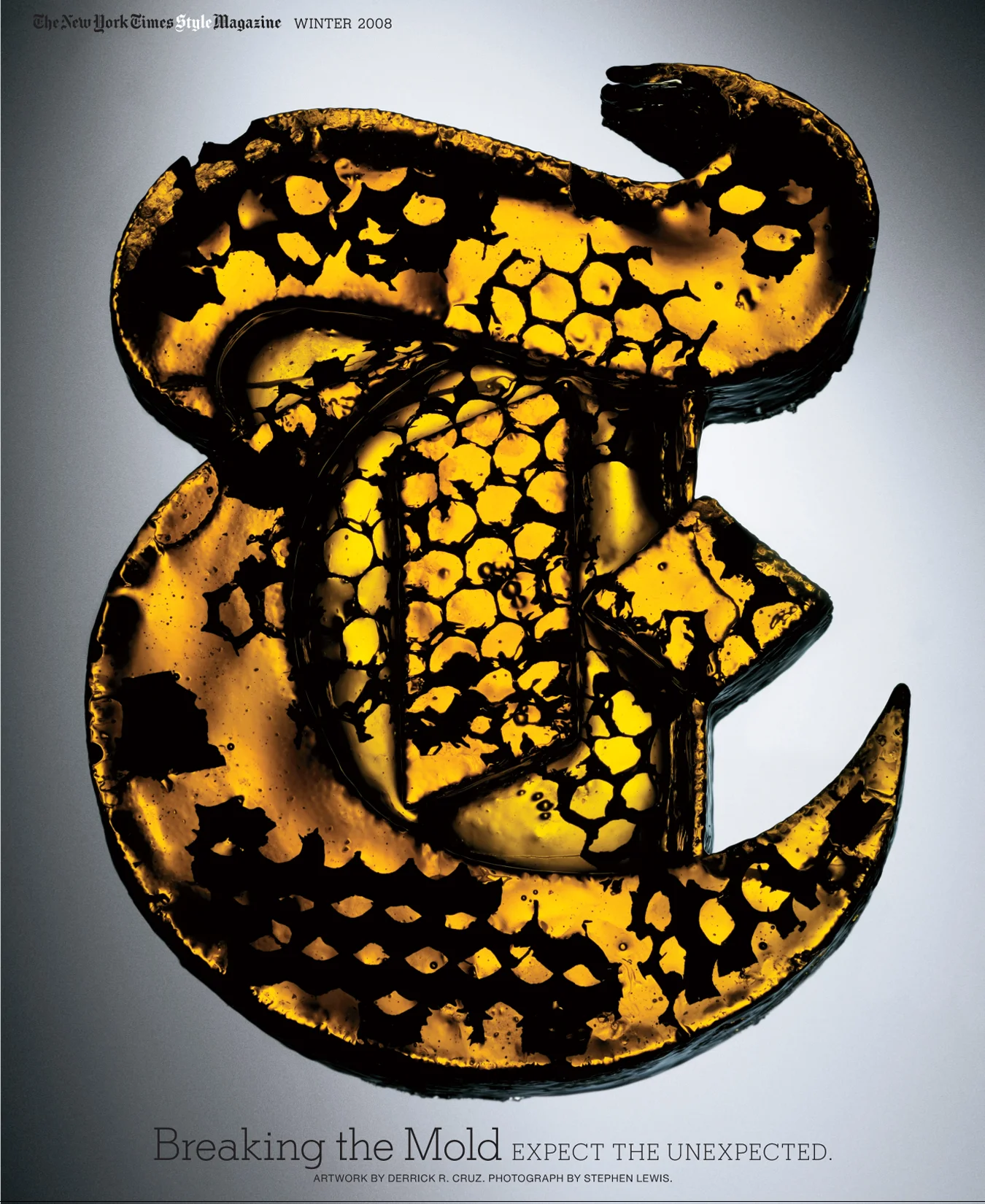 The New York Times commissioned me to recreate their iconic Style Magazine "T" in whatever materials I was working with at the time. The result was this 18k gold and sugar glass three dimensional "T."