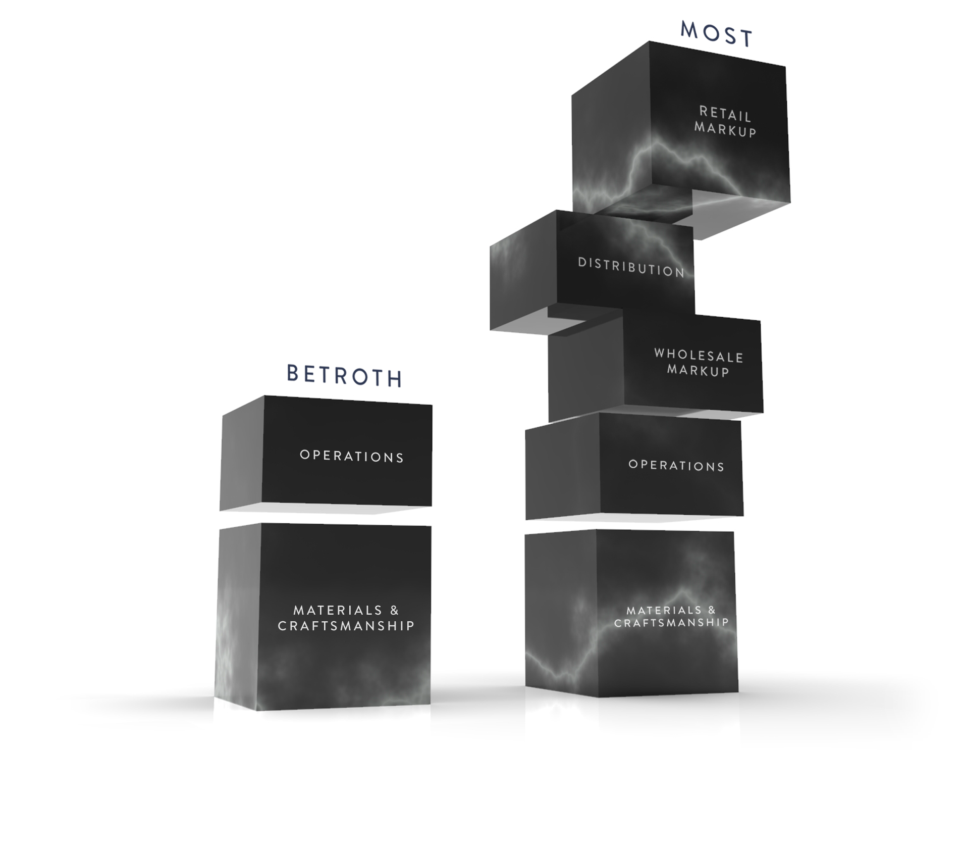 Most retailers mark up jewelry 8 to 10 times the cost of manufacturing. Our jewelry is handcrafted with the same care and quality as the finest luxury brands, but we’re able to eschew traditional markups by selling directly to our customers.